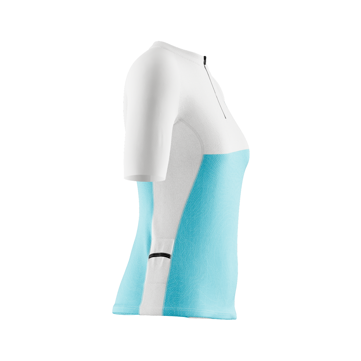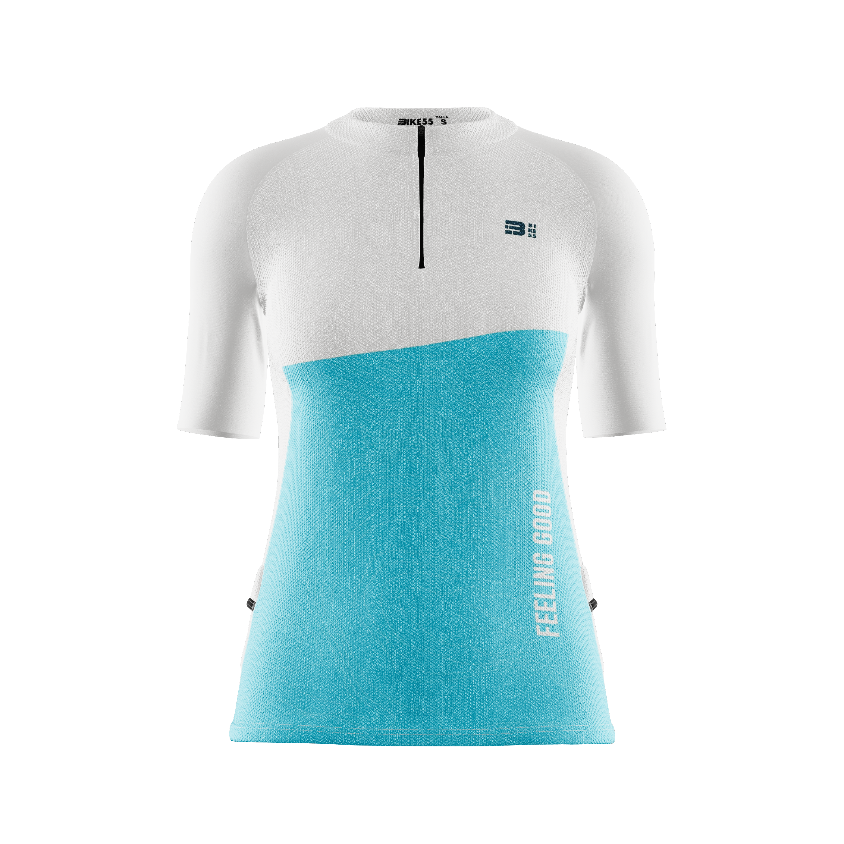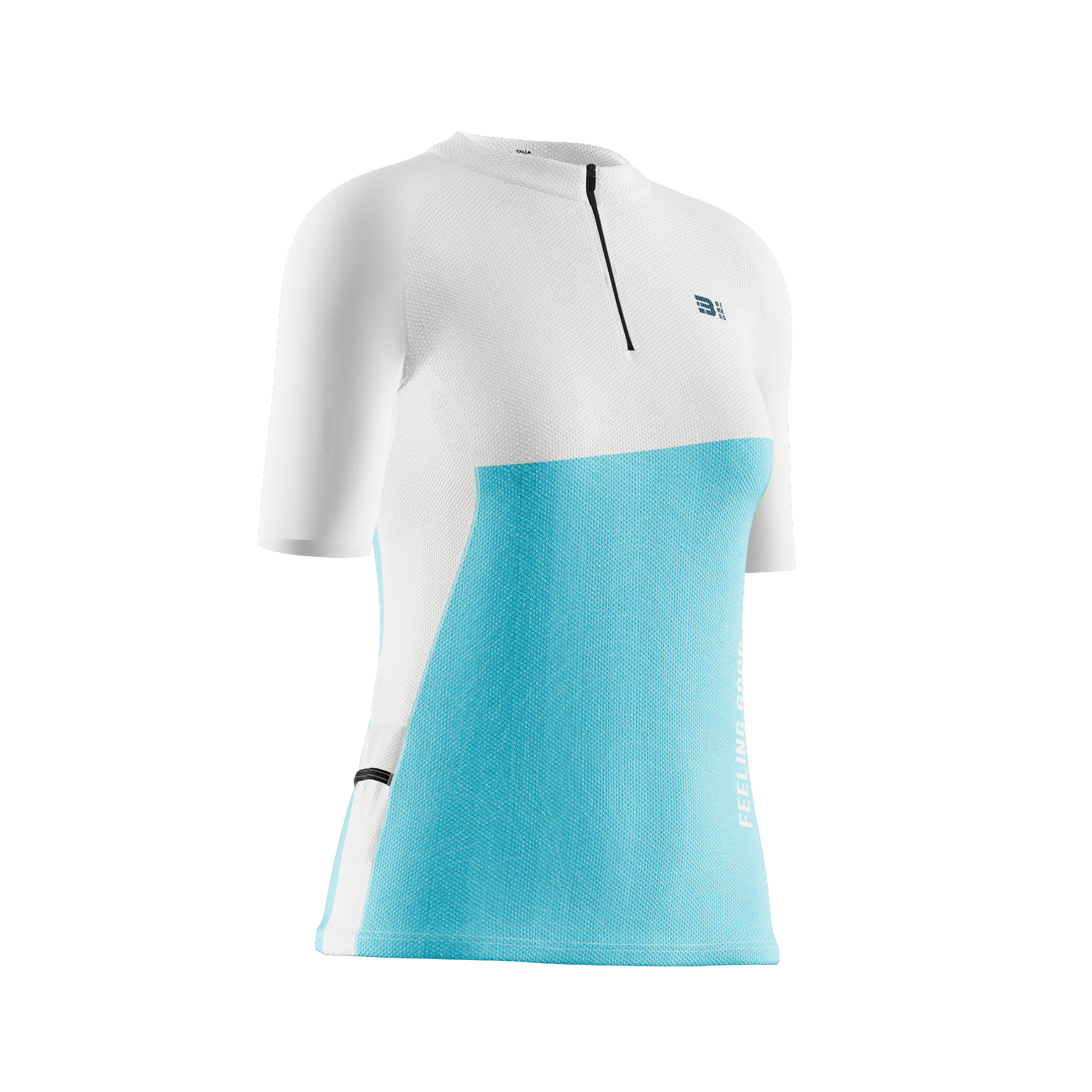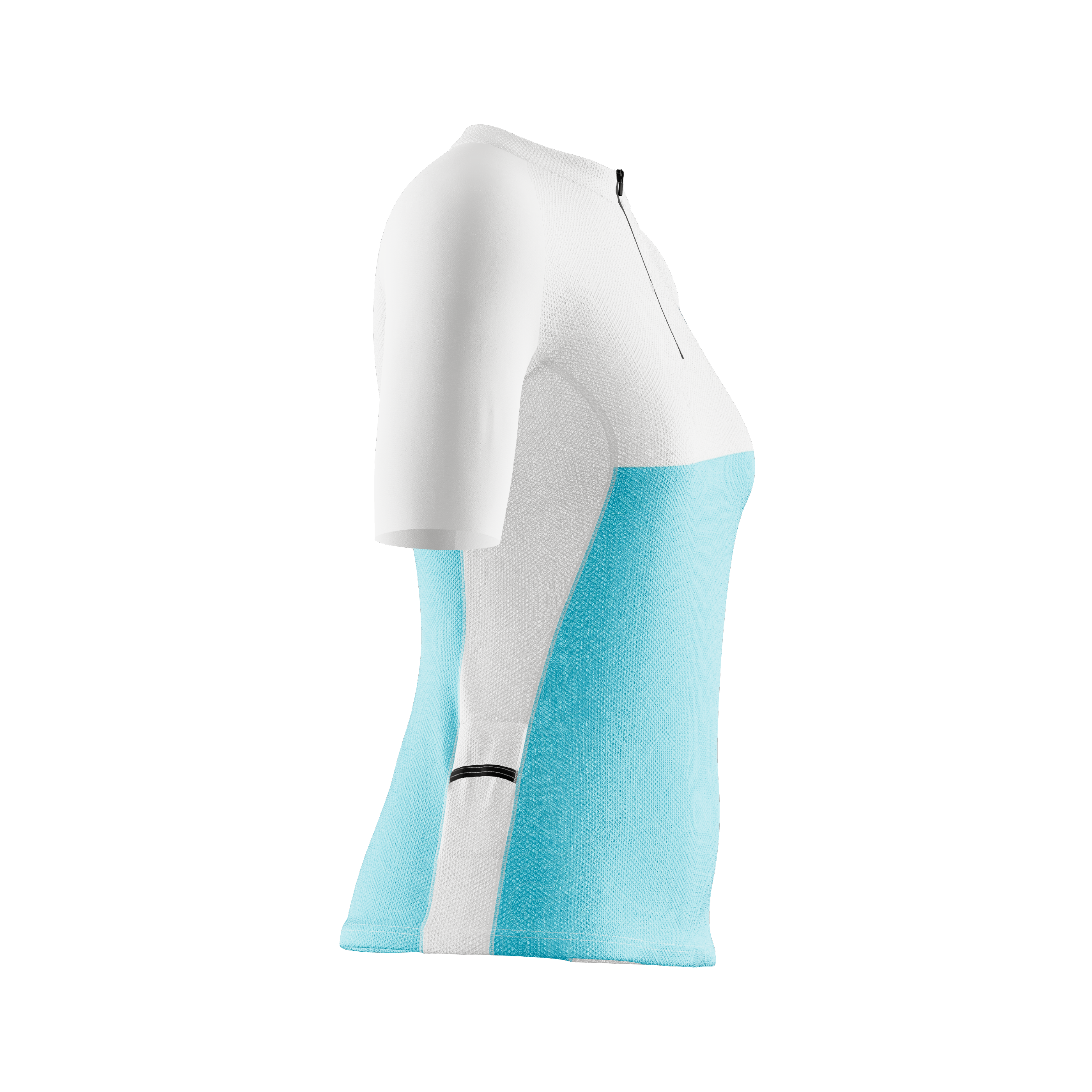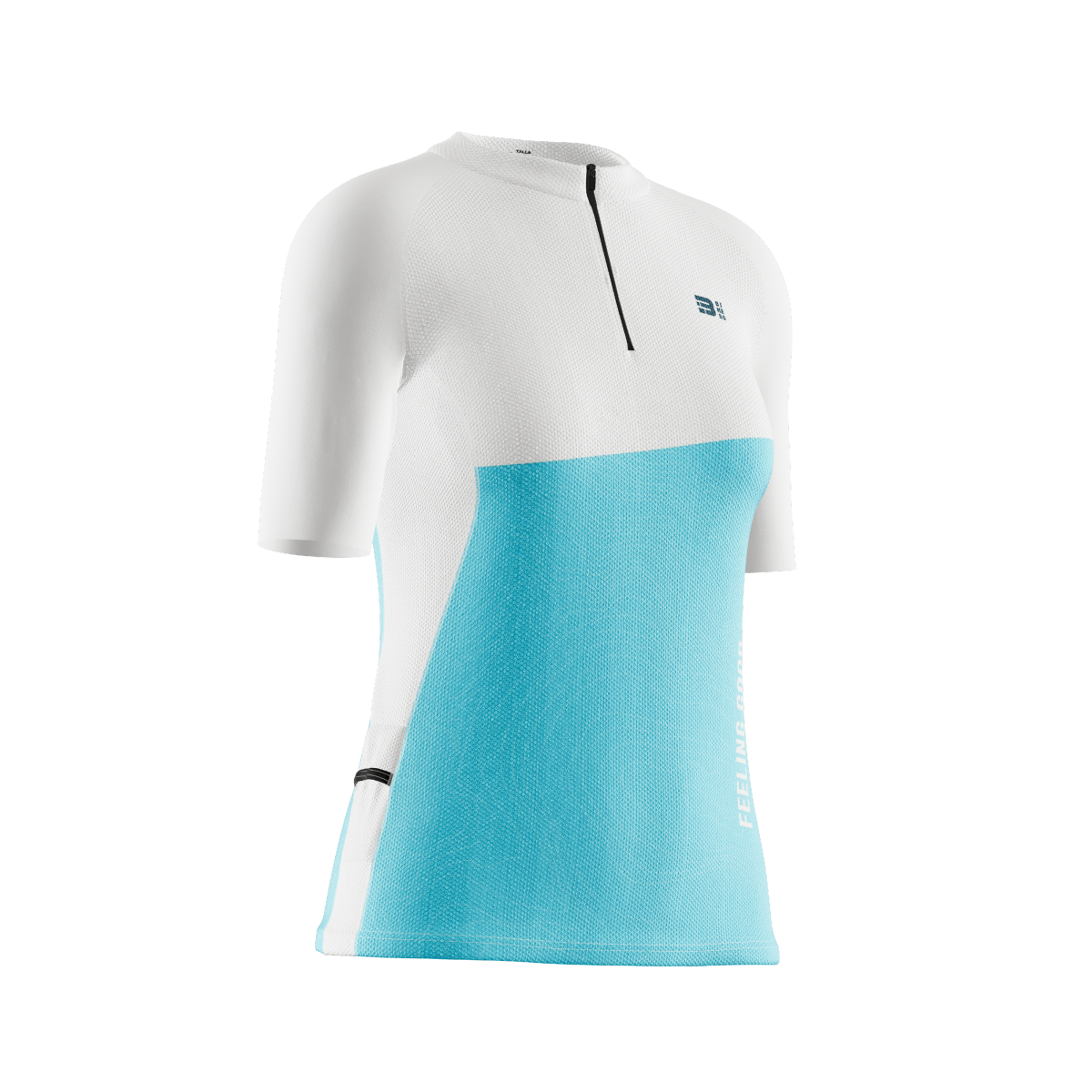 Camiseta fabricada en tejido calado 100% poliéster. Las mangas 88% poliéster 12% elastómero para un mejor ajuste. Una prenda con una perfecta adaptabilidad al contorno del cuerpo y que al mismo tiempo posee gran ligereza. Excelente gestión de la humedad para mantener la piel seca durante la práctica del deporte. Cosida con costuras planas y cremallera corta camlock con cursor de silicona. Incluye además dos bolsillos laterales ajustados para geles, barritas, etc.